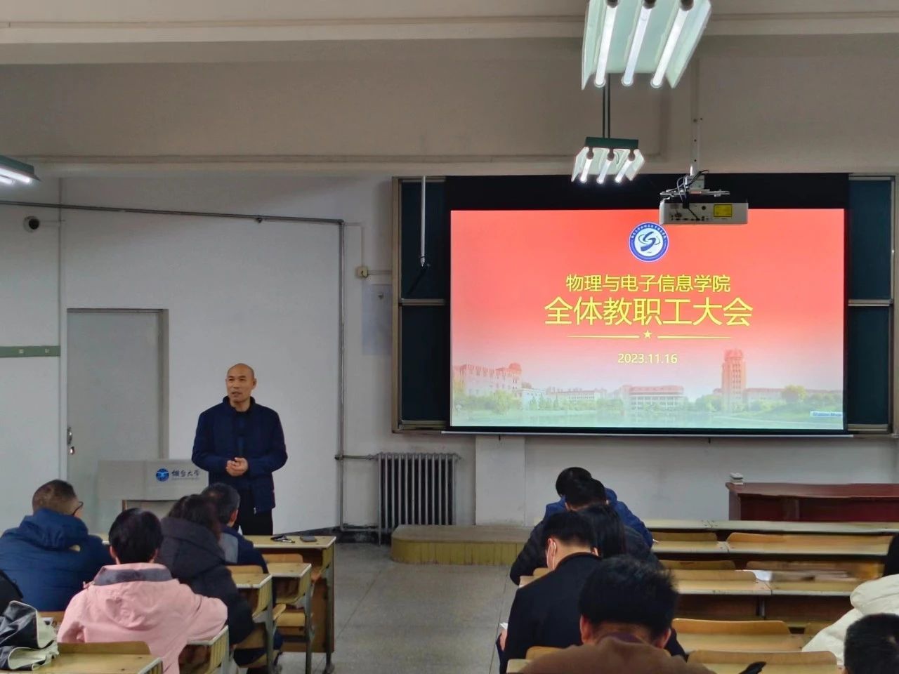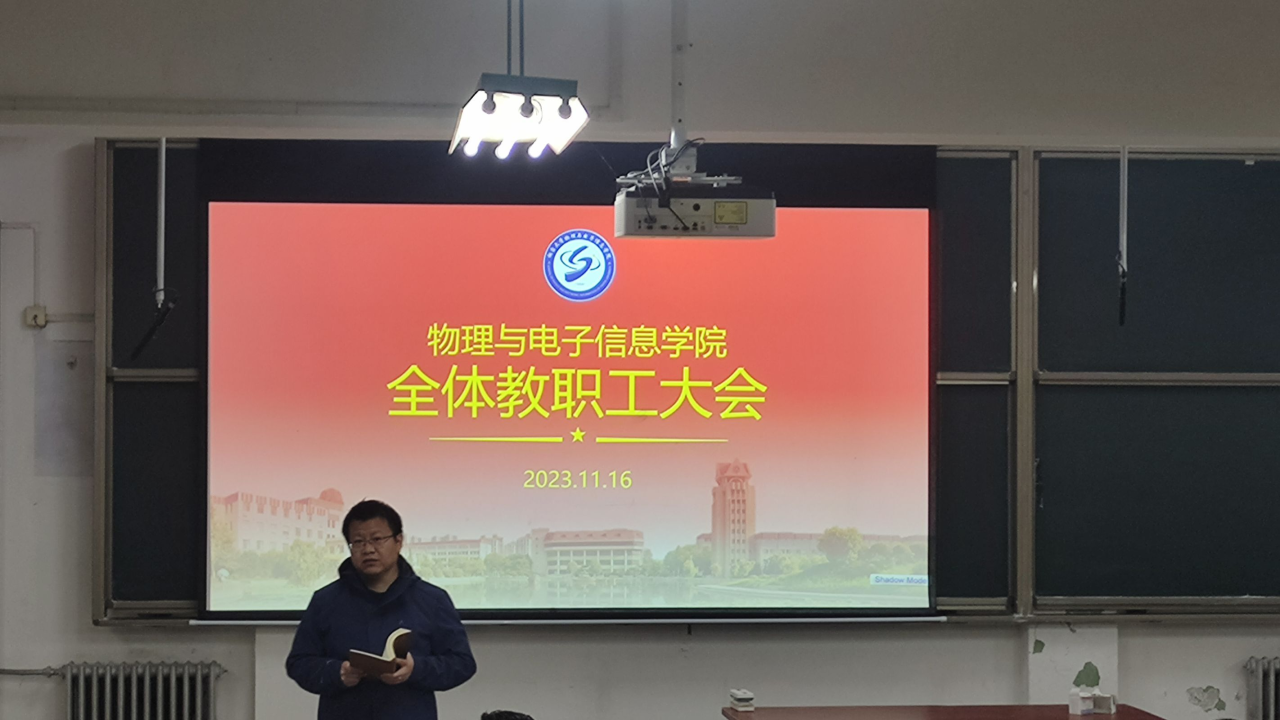 在四教101召开全院教职工大会,晋刚副院长在会上传达了“伊莉影片