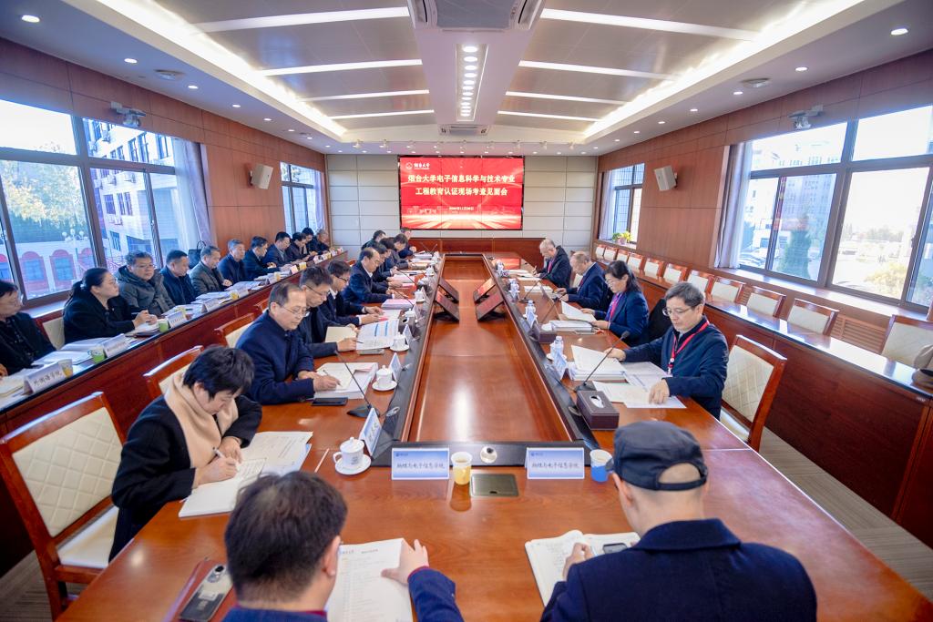 【本站讯】11月20日至21日,受中国工程教育专业认证协会委托,以南京邮电大学陈鹤鸣教授任组长,长江大学孙祥娥教授、江苏中博通信有限公司沈顺元总工程师、西南大学李云伍教授为组员的专家组来校,对电子信息科学与技术专业进行认证现场考查。