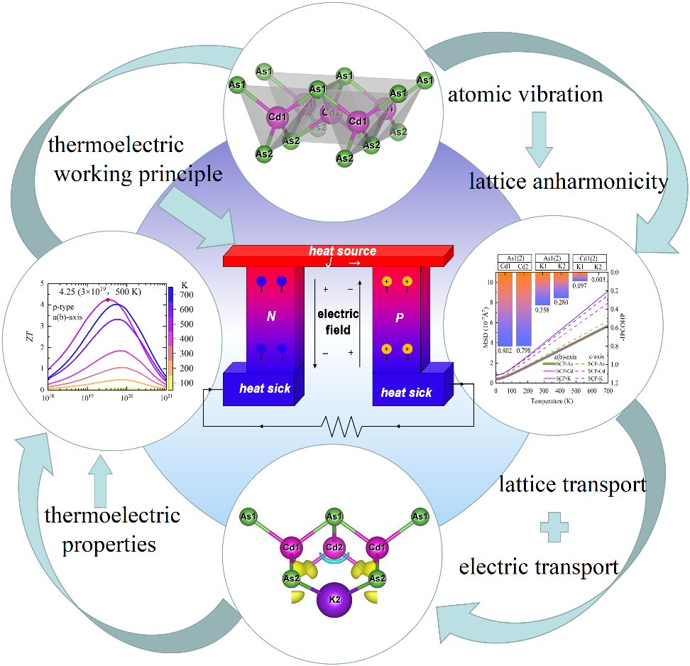 的戴振宏教授和赵银昌教授课题组联合清华大学倪军教授课题组在国际知名期刊《Energy & Environmental Materials》(五年影响因子16.5)上发表了题为“Effects of rattling behavior of K and Cd atoms along different directions in anisotropic KCdAs on lattice thermal transport and thermoelectric properties”的研究论文,文中报道了KCdAs的独特各项异性热电输运性质,指出KCdAs是一种极具潜力的热电候选材料,为设计新一代热电器件奠定了可靠理论基础和技术指导。