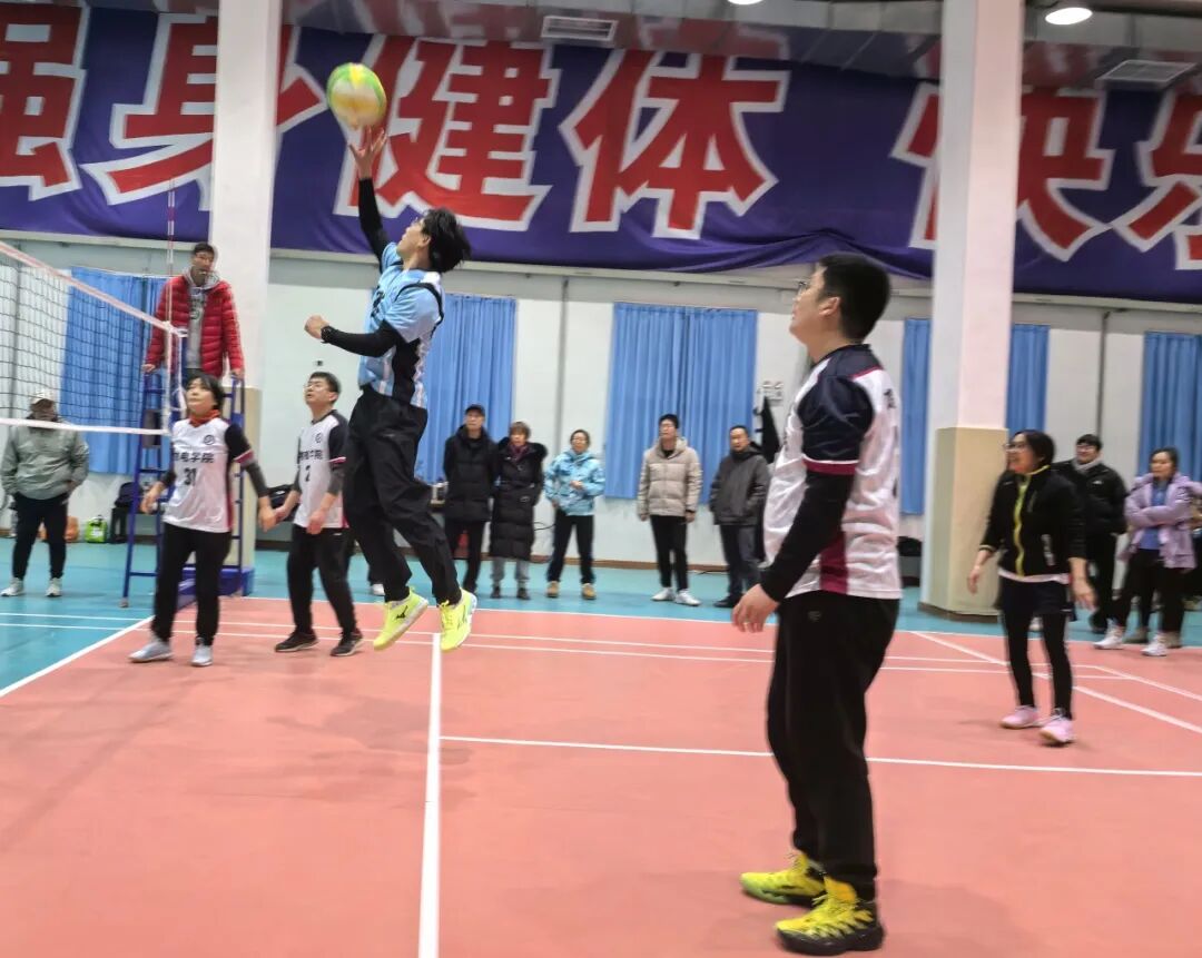 发球、垫球、扣杀、拦网……气排球在场地间穿梭的轨迹,正是“团结协作、顽强拼搏”的生动注脚。无论是首战的初露锋芒,还是后续赛程的稳扎稳打,物电学院代表队都用行动诠释着:讲台是教书育人的阵地,赛场是凝聚力量的舞台。
